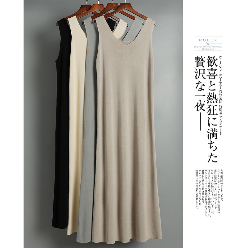 夏季薄款冰丝吊带连衣裙V领无袖背心裙内搭打底针织裙夏季打底裙