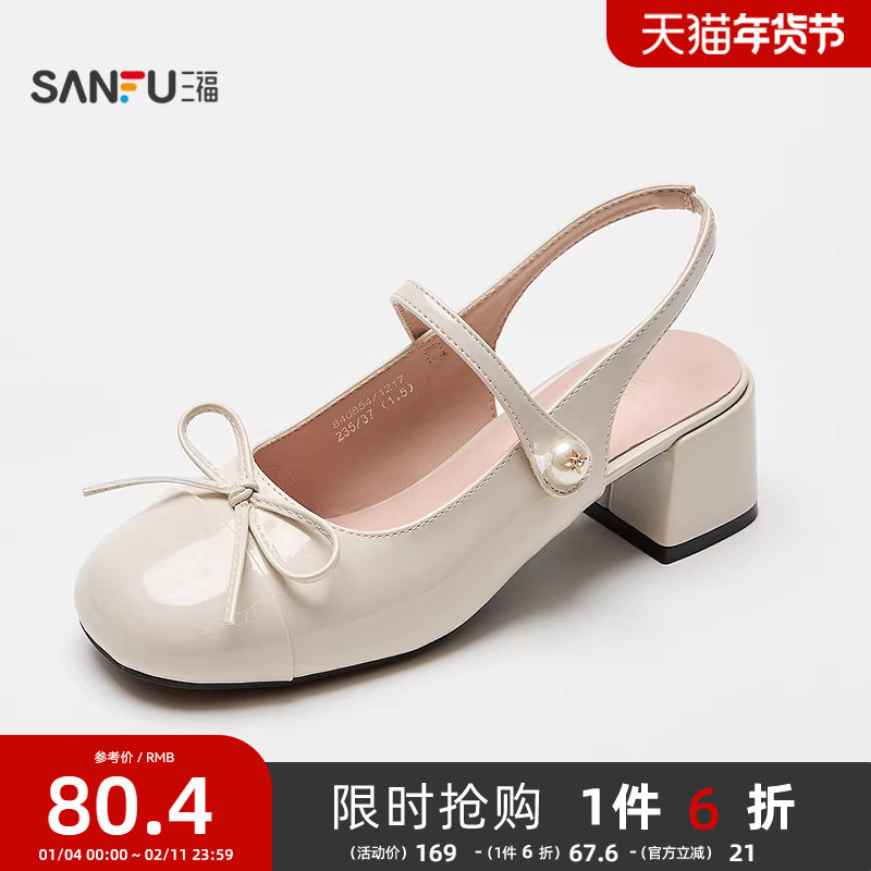 三福女单鞋夏季韩系少女蛋卷鞋时尚亮面气质娃娃鞋女鞋843751