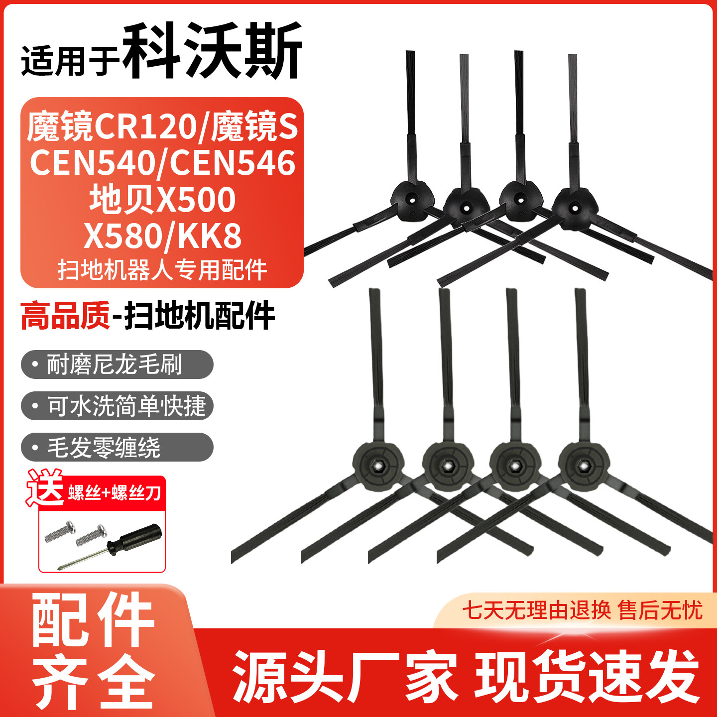 适配科沃斯扫地机器人边刷灵犀CR120魔镜S地宝CEN540/546毛刷配件