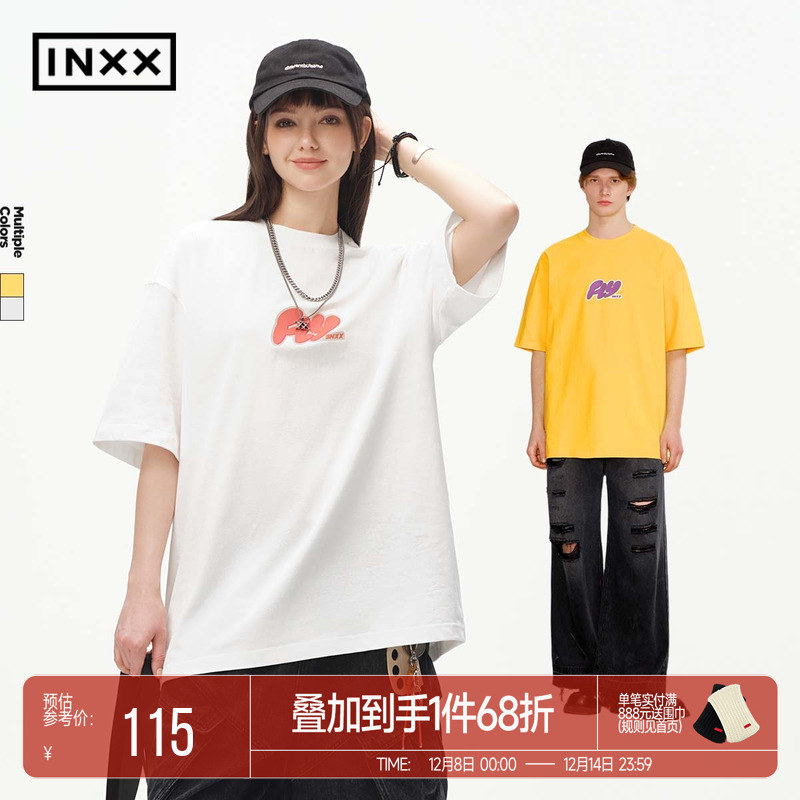 INXX简约纯色短袖T恤男女同款夏季250G重磅字母印花半袖上衣