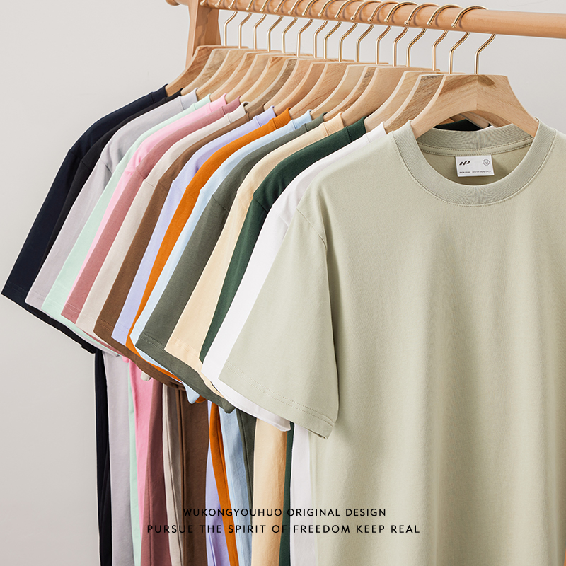 悟空有货夏季300G重磅纯色短袖T恤男女潮牌宽松基础打底纯棉体恤
