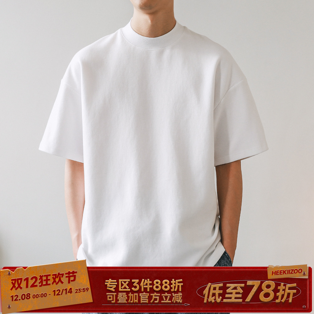 HMN Studio美式复古300g重磅纯色短袖t恤男宽松简约cleanfit打底