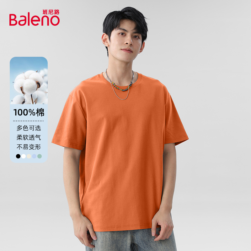 班尼路正肩简约纯色短袖t恤男夏季新款美式小领口纯棉男士半袖衫
