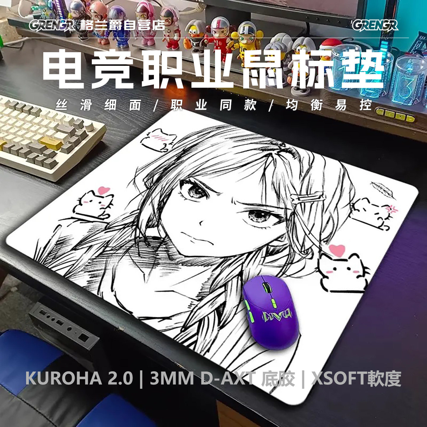 Kuroha片刻欲语复刻鼠标垫电竞CS动漫线稿二次元电脑游戏办公桌垫