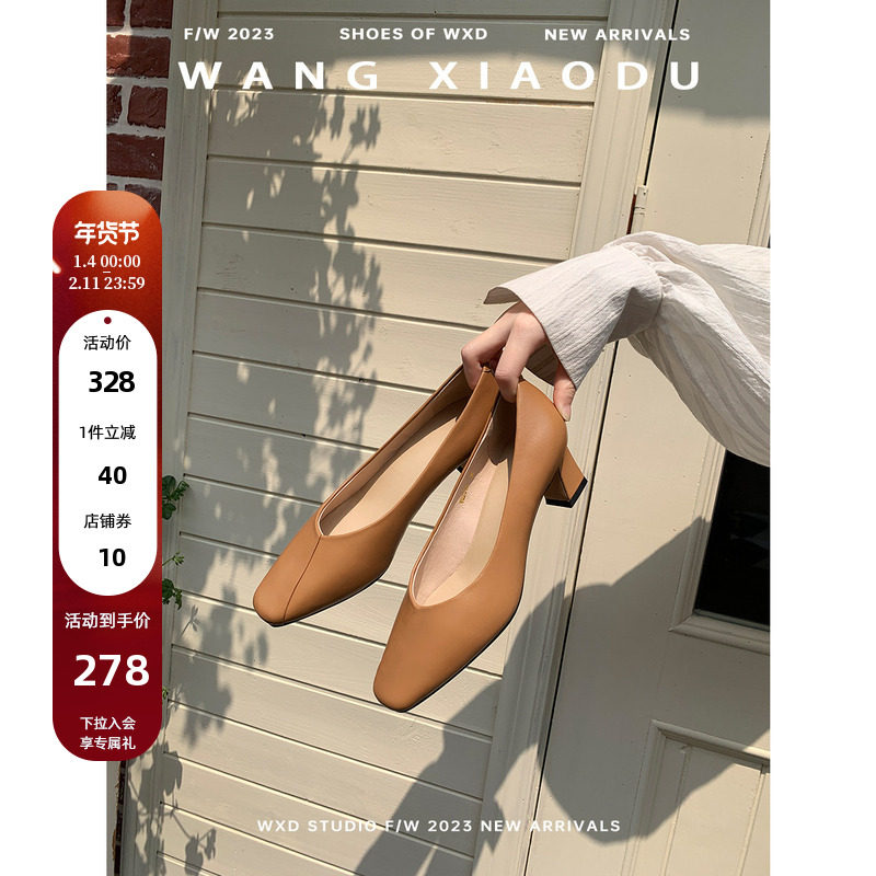【王小毒】享受片刻●奶奶鞋羊皮浅口通勤单鞋女粗跟真皮复古女鞋