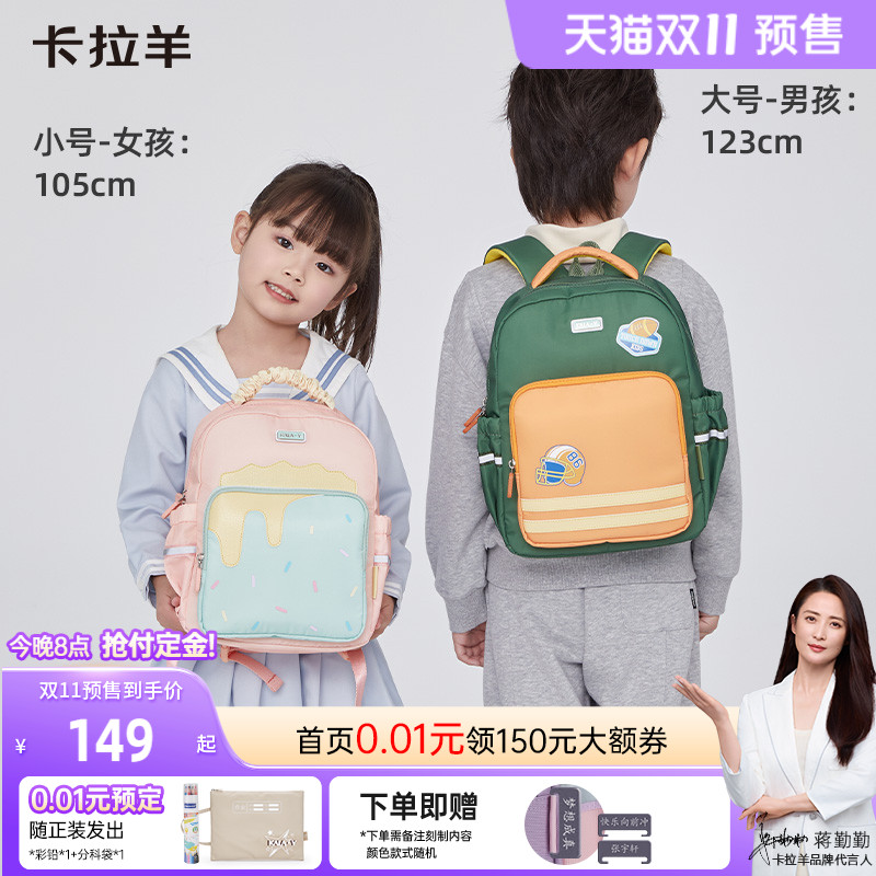 卡拉羊幼儿园书包3-6岁男女孩小中大班儿童宝宝背包防水耐脏抑菌