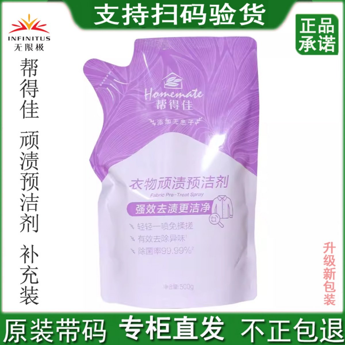 无限极帮得佳衣物顽渍预洁剂袋装500毫升产品彩漂正品洁净去污渍