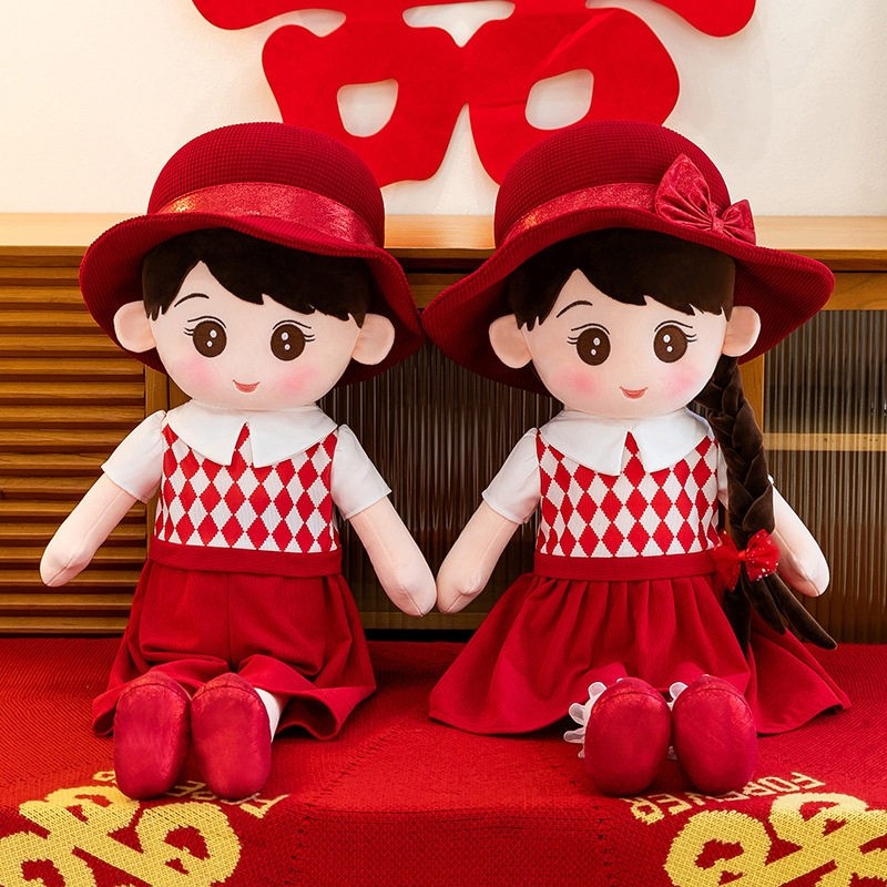 喜庆压床娃娃一对情侣毛绒玩具婚庆男孩女孩结婚房布置陪嫁礼物品