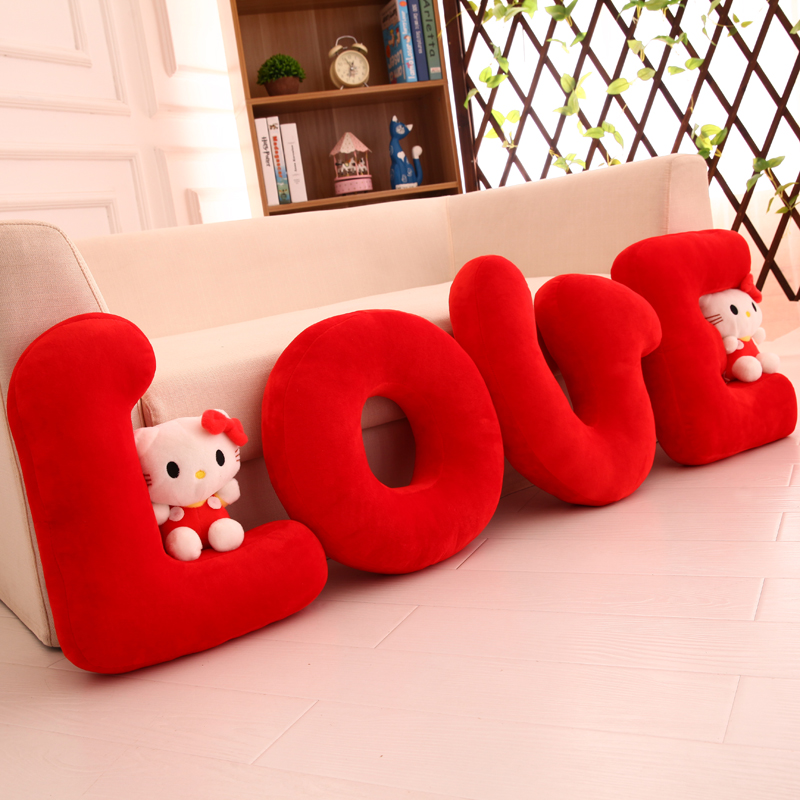 结婚情侣毛绒玩具抱枕婚庆婚房装饰LOVE字母摆件新婚礼物压床娃娃