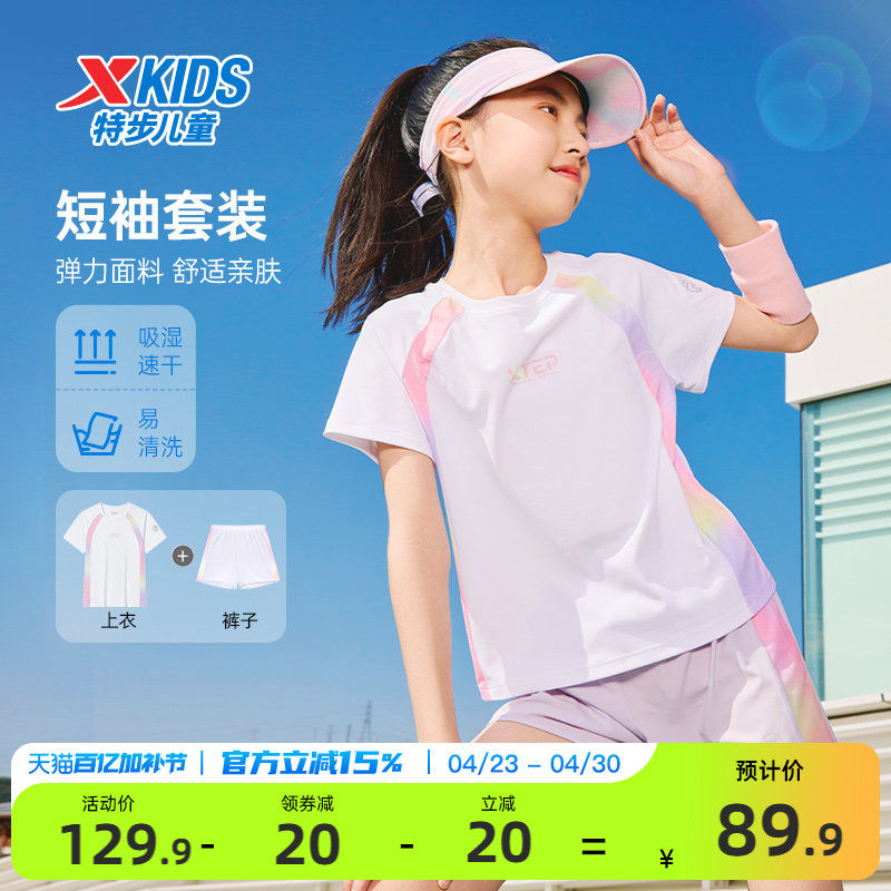 氢风|特步童装女童短袖短裤两件套2026年夏季新款儿童短T拼接套装