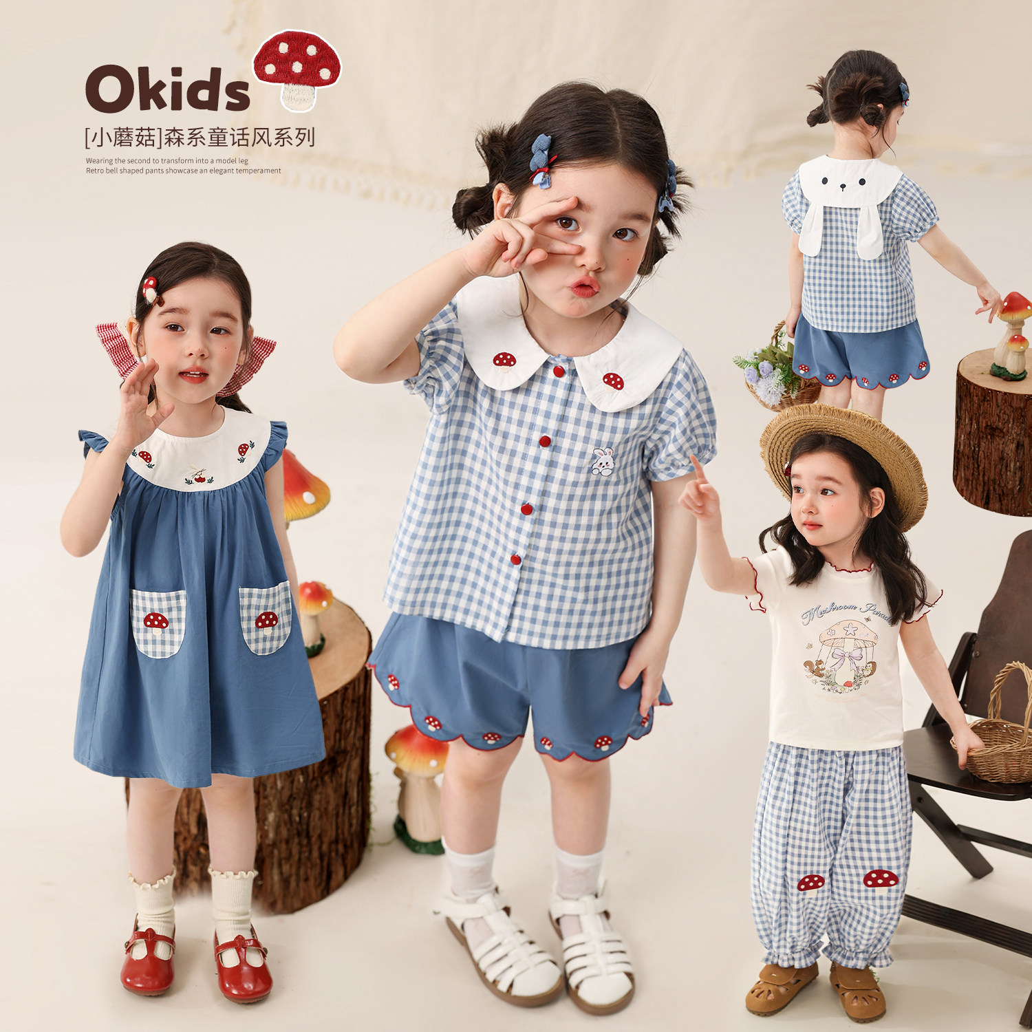 小O宝童装女宝宝夏季套装小蘑菇2026新女童短袖娃娃衫短裤两件套