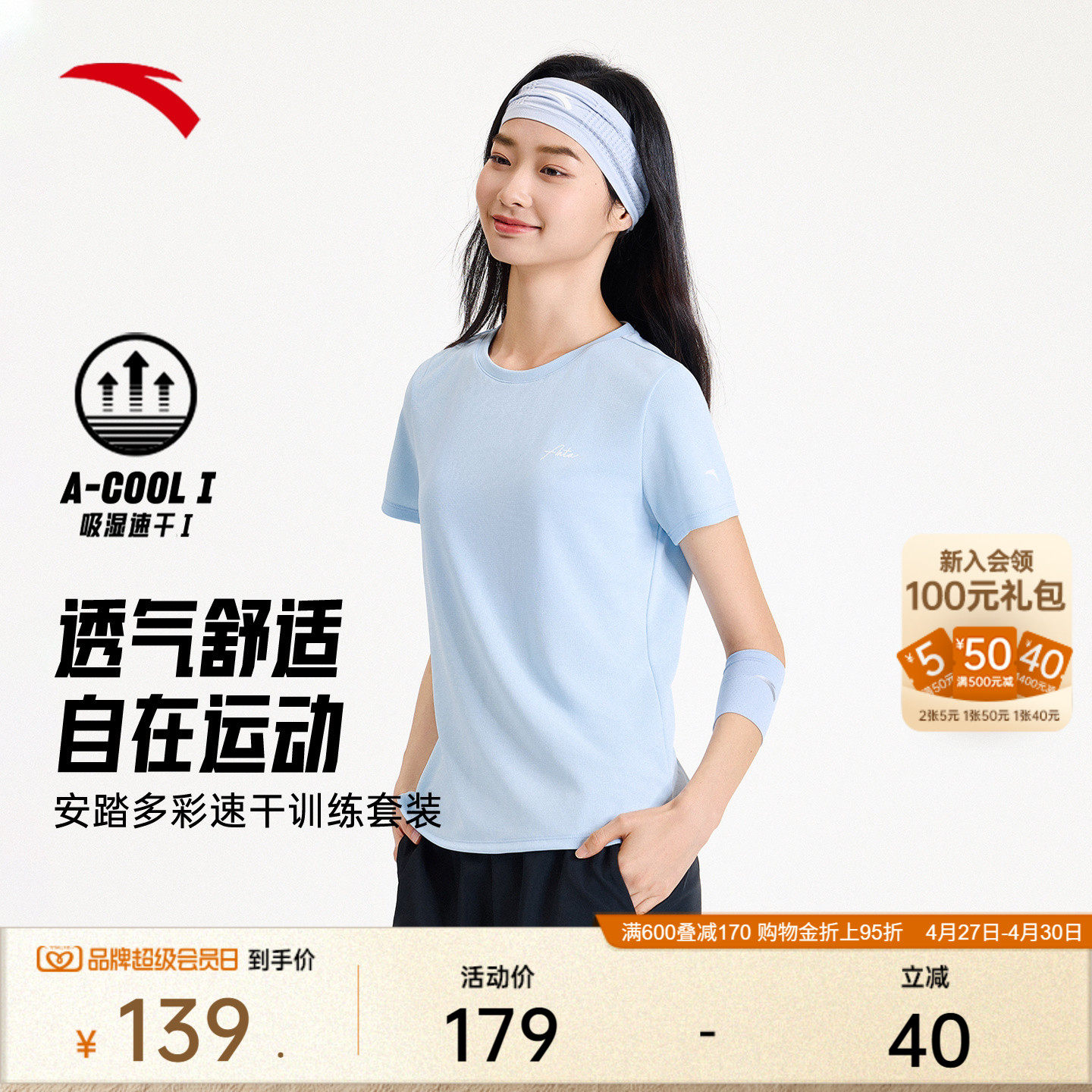 安踏速干套装透气跑步两件套女夏季羽毛球训练运动服短裤短袖T恤