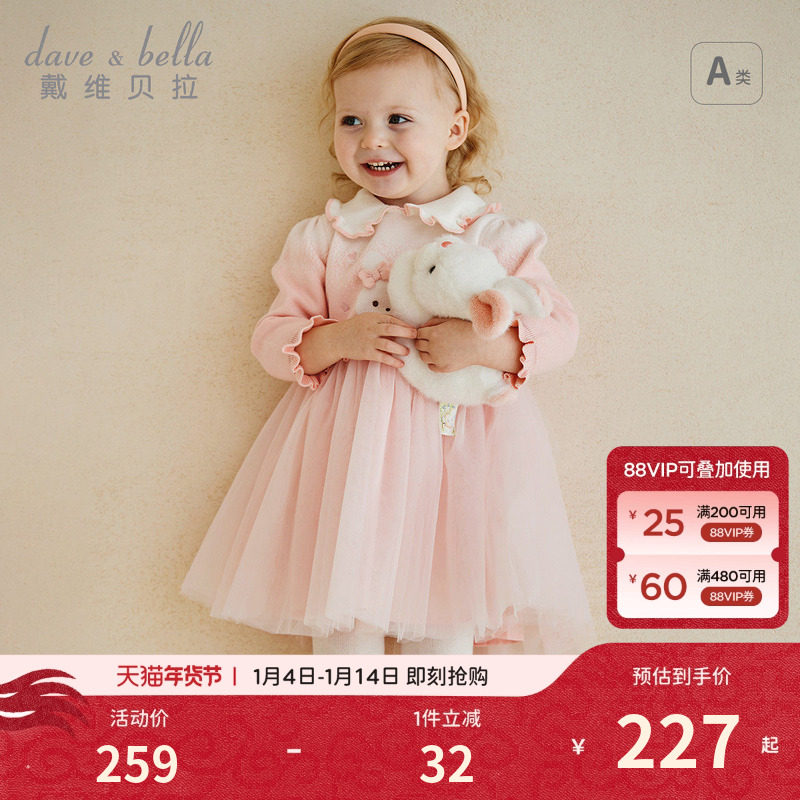 戴维贝拉儿童连衣裙新款秋装女童针织裙蓬蓬裙子小女孩公主裙童装