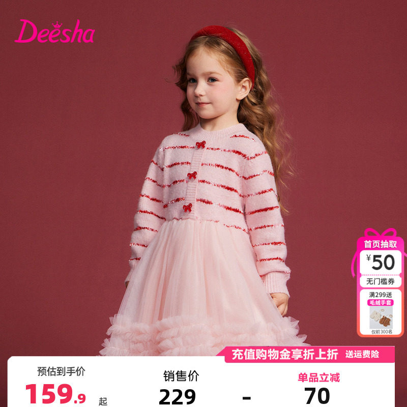 巴拉巴拉童装儿童针织连衣裙女童2025秋冬装新款公主拼接网纱裙子