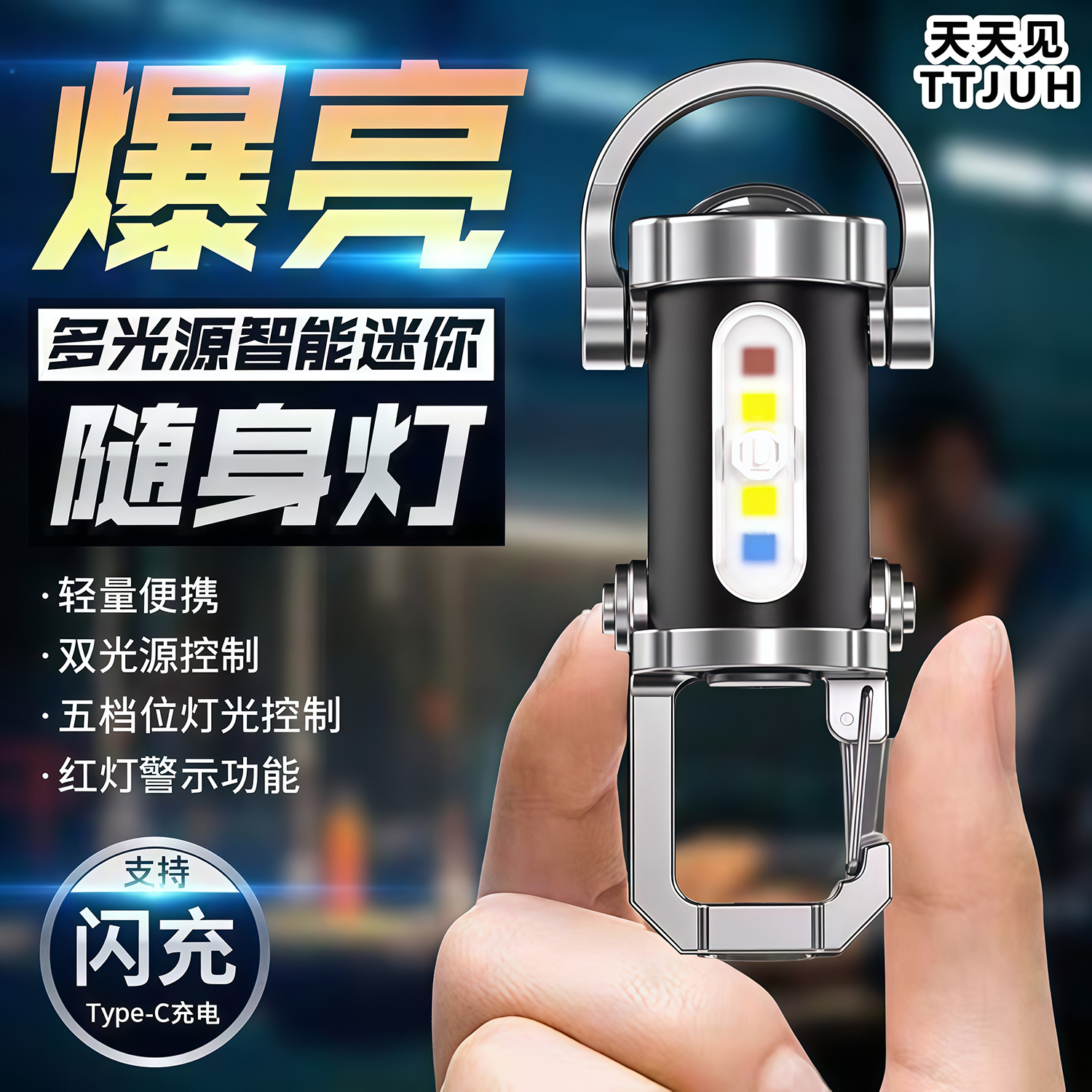 多功能户外应急钥匙扣照明灯便携式腰挂钥匙扣迷你手电筒充电防水