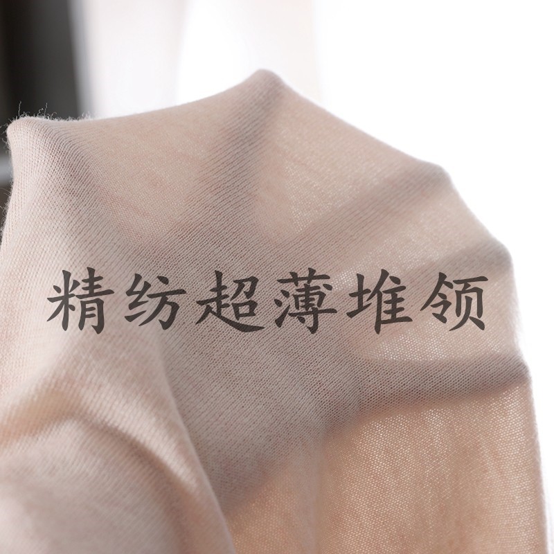春秋精纺羊绒衫女堆堆领宽松超薄毛衣微透上衣打底衫半高领羊毛衫