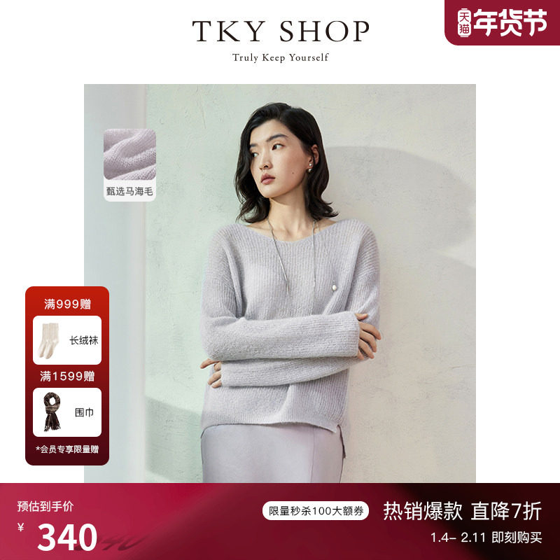 TKY SHOP慵懒感马海毛针织衫女春秋新款宽松薄毛衣女气质通勤上衣
