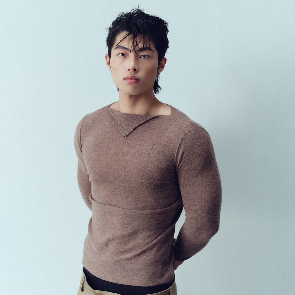 KADAKADA纯羊毛弹力修身显大凹凸分割一体成型三角领少年感薄毛衣