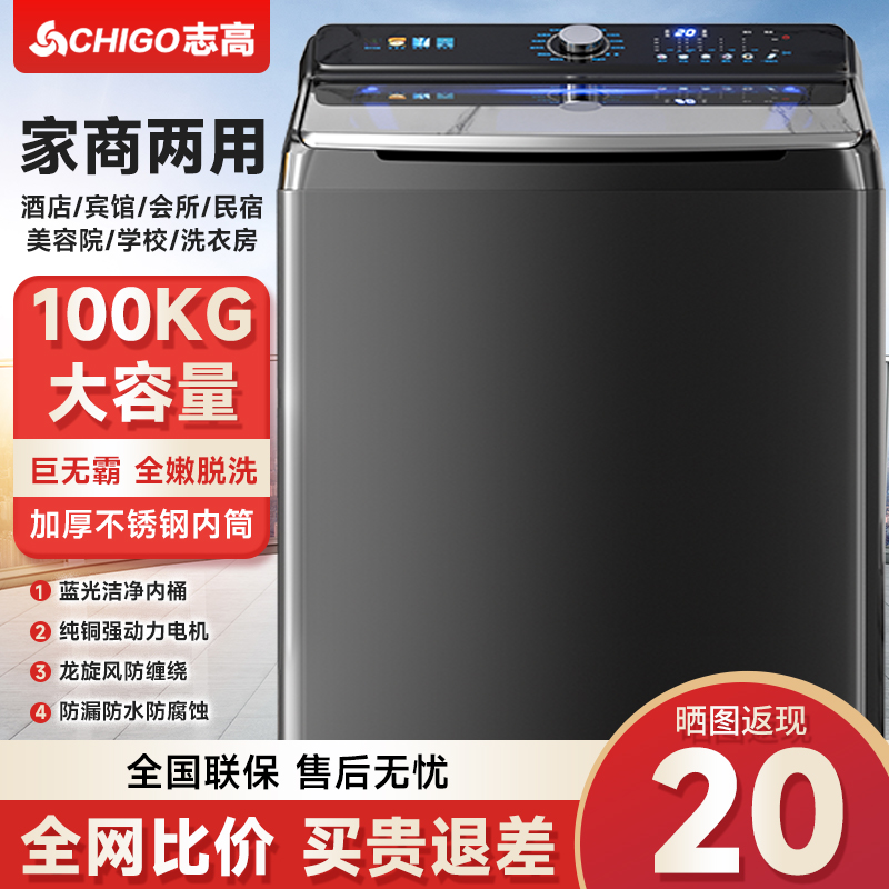 志高洗衣机全自动超大容量酒店宾馆商用家用洗脱一体强力风干脱水