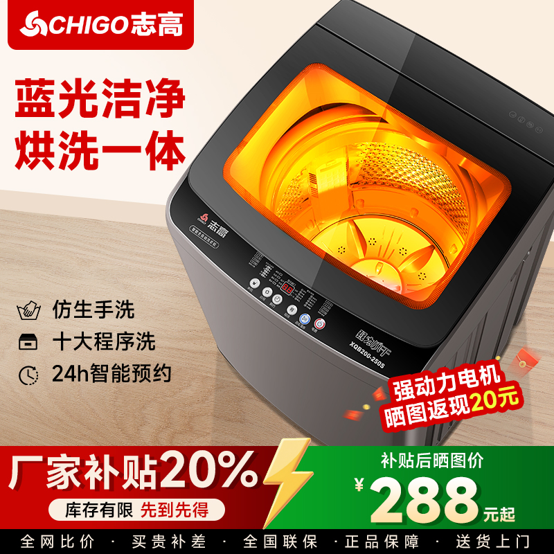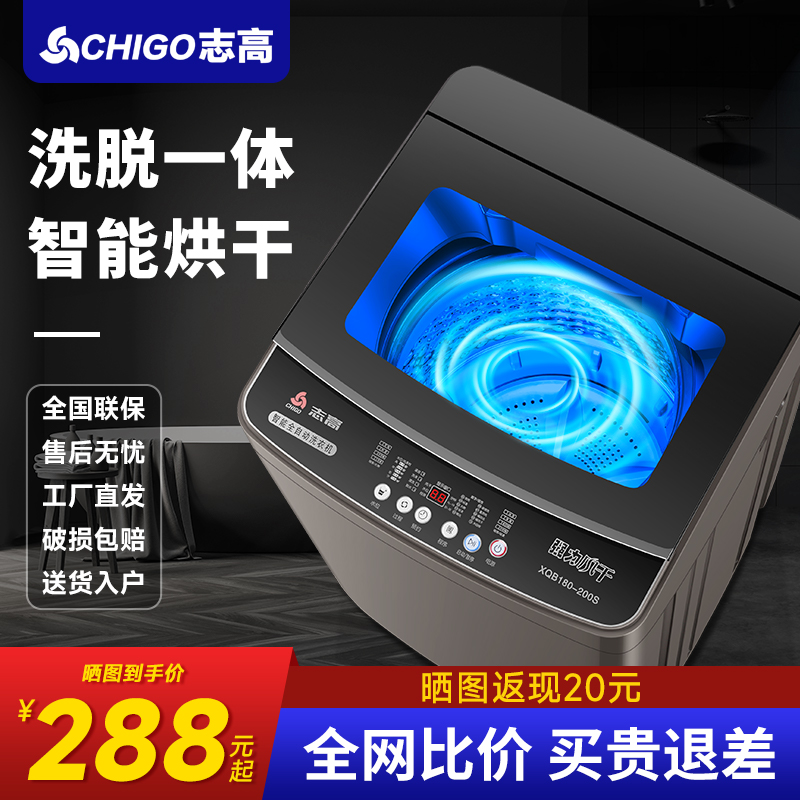 志高全自动波轮洗衣机家用小型大容量洗脱洗烘一体宿舍 脱水风干