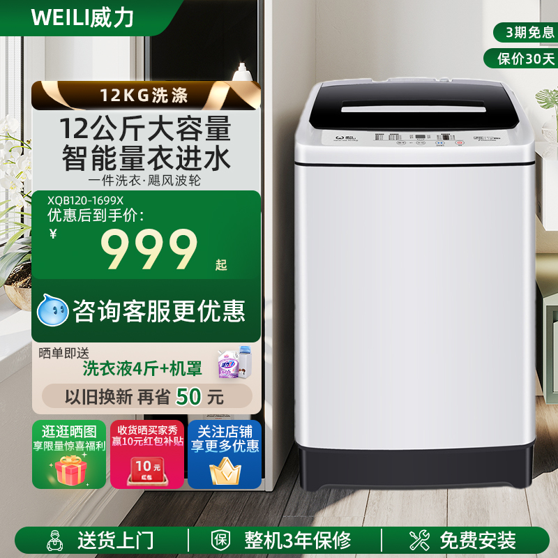 WEILI/威力12KG大容量全自动家用波轮洗衣机内风干洗脱一体1699X