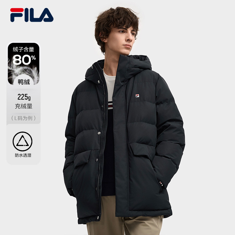 FILA 斐乐官方男士中长款羽绒服2025冬新款时尚休闲保暖连帽外套