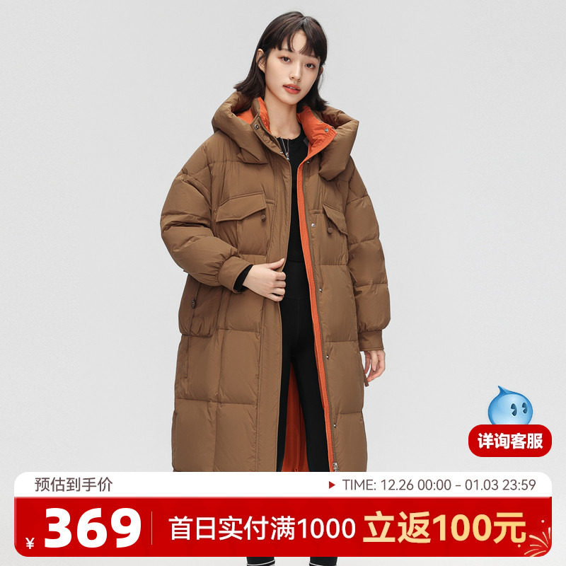 陈都灵同款|森马轻松羽绒服女长款三防2024冬新款宽松连帽外套暖