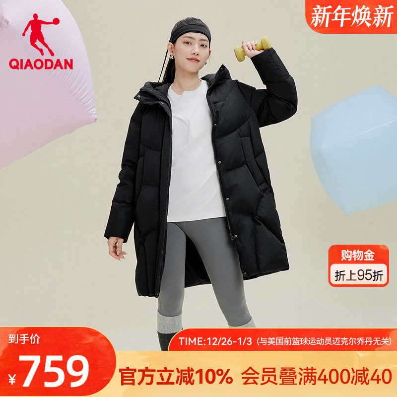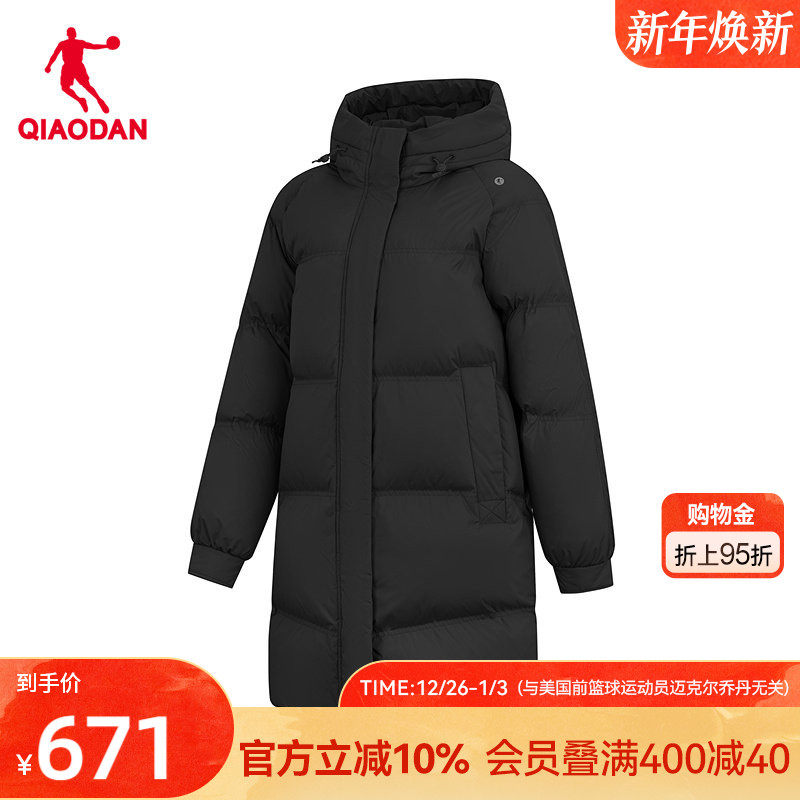 鸿星尔克长款羽绒服女款冬季新款女士中长款好看棉服黑色大衣外套