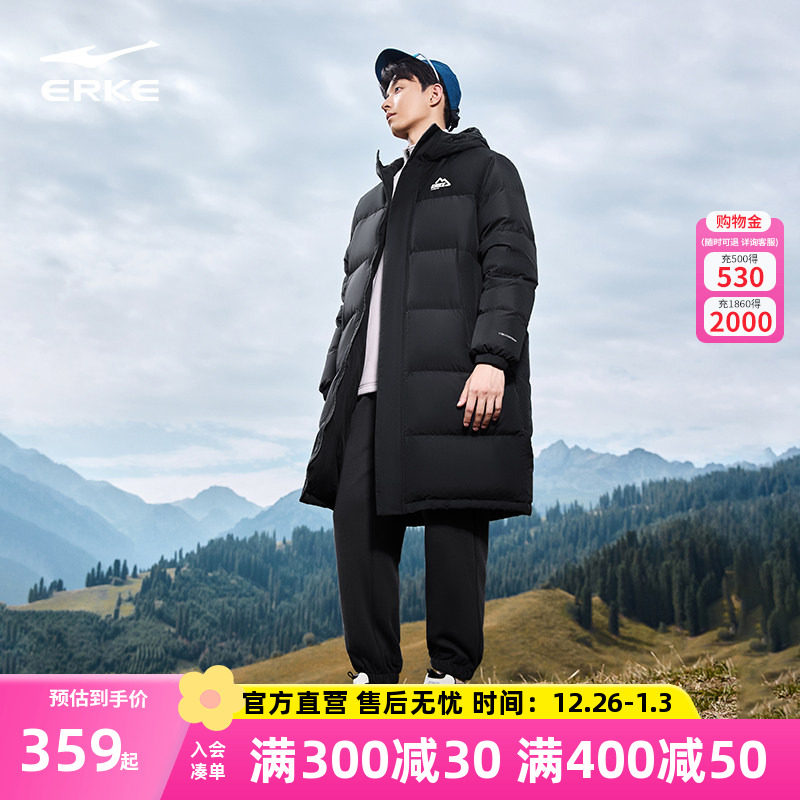 准者运动长款羽绒服2025新款冬季保暖防风连帽款篮球户外男士外套
