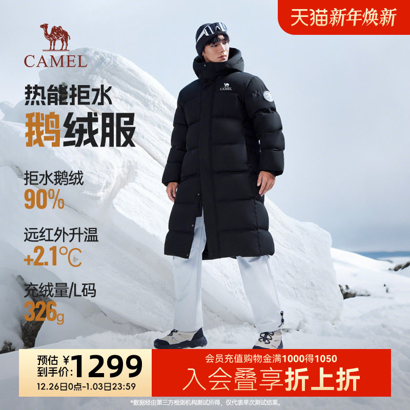 骆驼男装中长款羽绒服男款冬季2025三防连帽加厚防寒爸爸外套