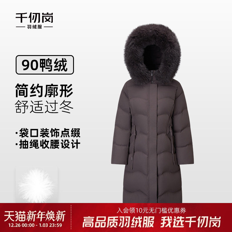 千仞岗2025秋冬新款长款羽绒服狐狸毛领连帽保暖通勤气质女外套