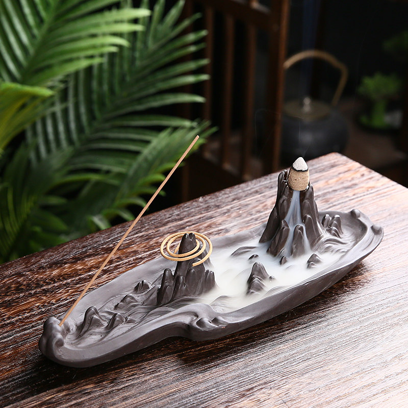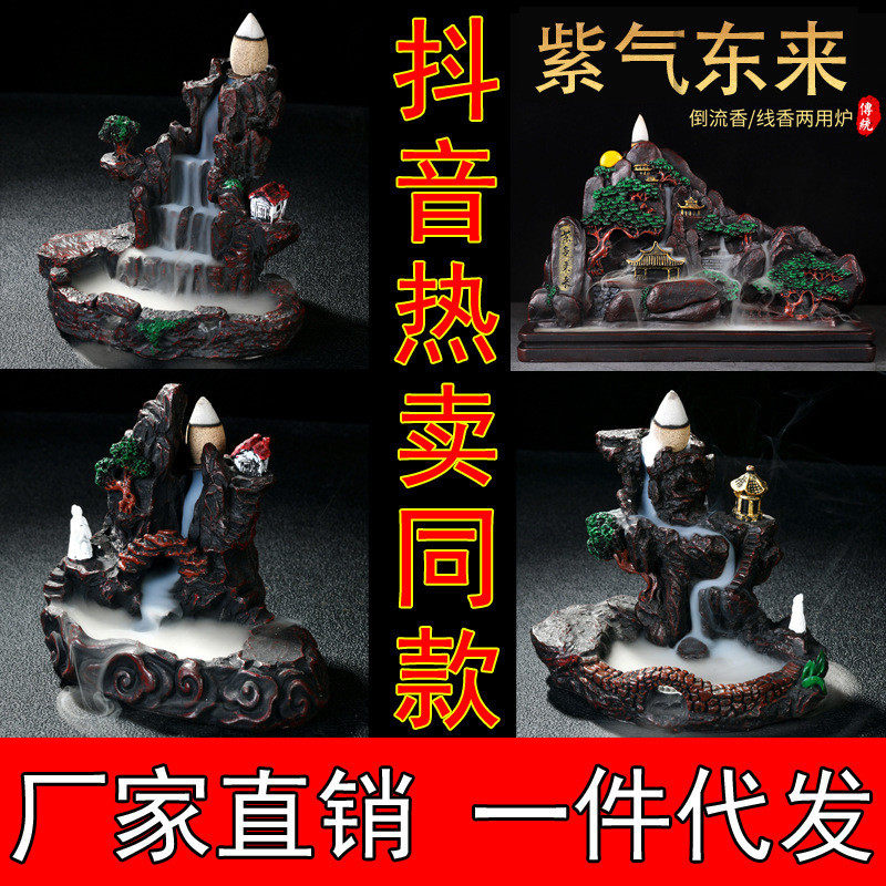 倒流香炉高山流水摆件中式禅意创意多功能家用香薰室内沉香熏香炉