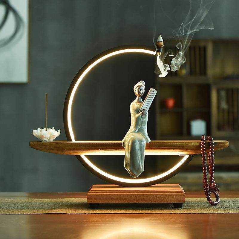新中式倒流香炉创意摆件陶瓷家用室内薰香禅意檀香沉香客厅桌面灯