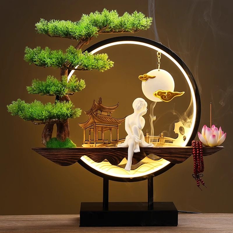 禅意中式高山流水倒流香炉灯圈创意家居檀香沉香家用室内香薰摆件