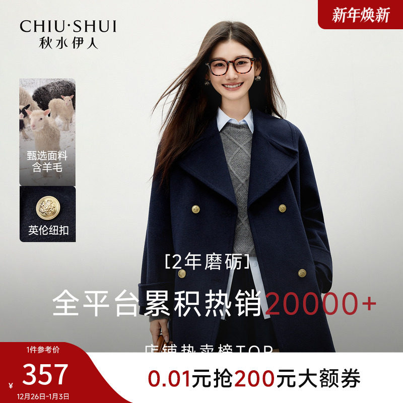 墨秋JK制服熊仔羊毛呢牛角扣学院风大衣小个子冬季加厚中长款外套