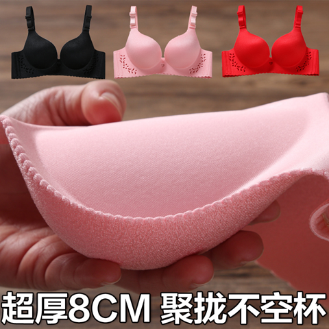 一片式超厚8CM小胸文胸聚拢无钢圈上托性感a杯平胸无痕加厚内衣女