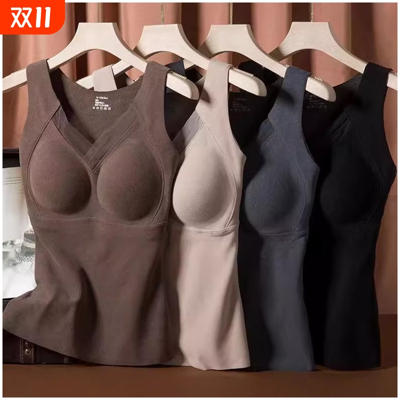 蕉轩德绒无痕保暖内衣内穿加绒加厚发热上衣棉背心马甲秋冬季女款