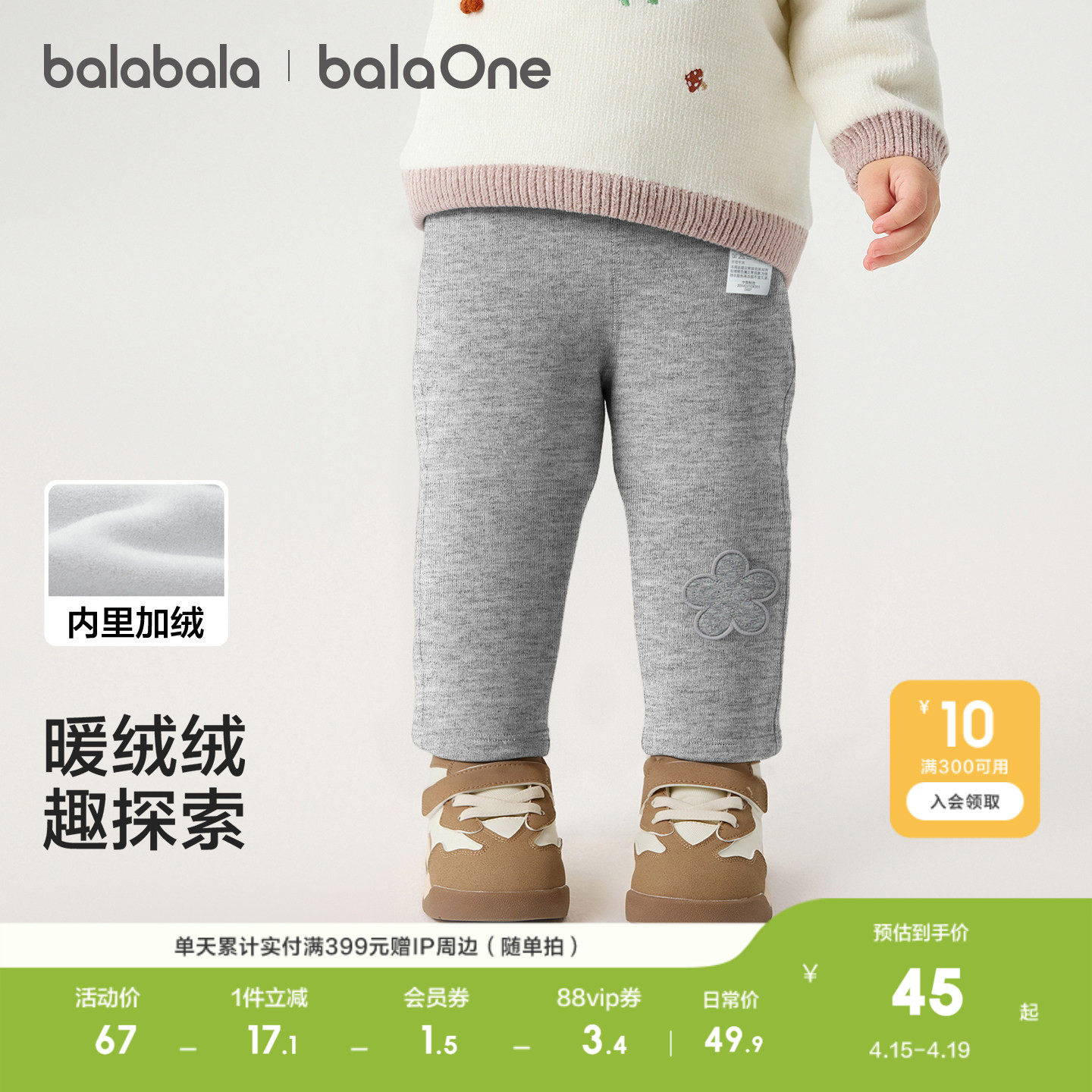 巴拉巴拉balaOne宝宝打底裤加绒保暖长裤冬女童男童裤子纯棉柔软