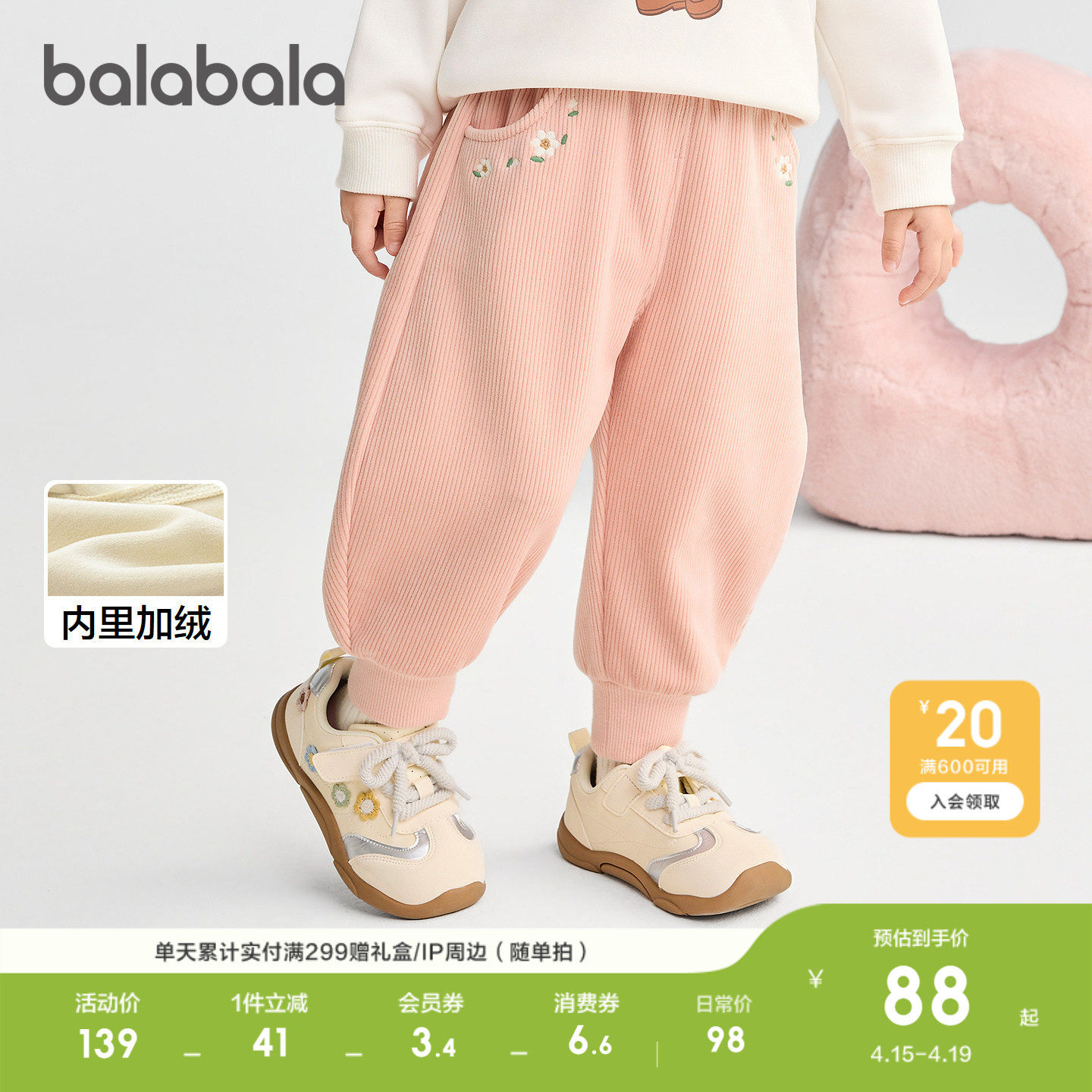 【商场同款】巴拉巴拉儿童长裤子男女童2026冬装休闲宝宝加绒保暖