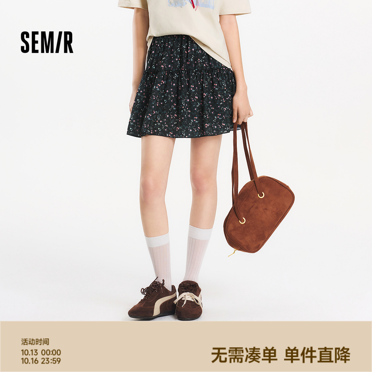 森马半身裙女碎花雪纺俏皮森系2025夏季新款设计感木耳边蓬蓬短裙