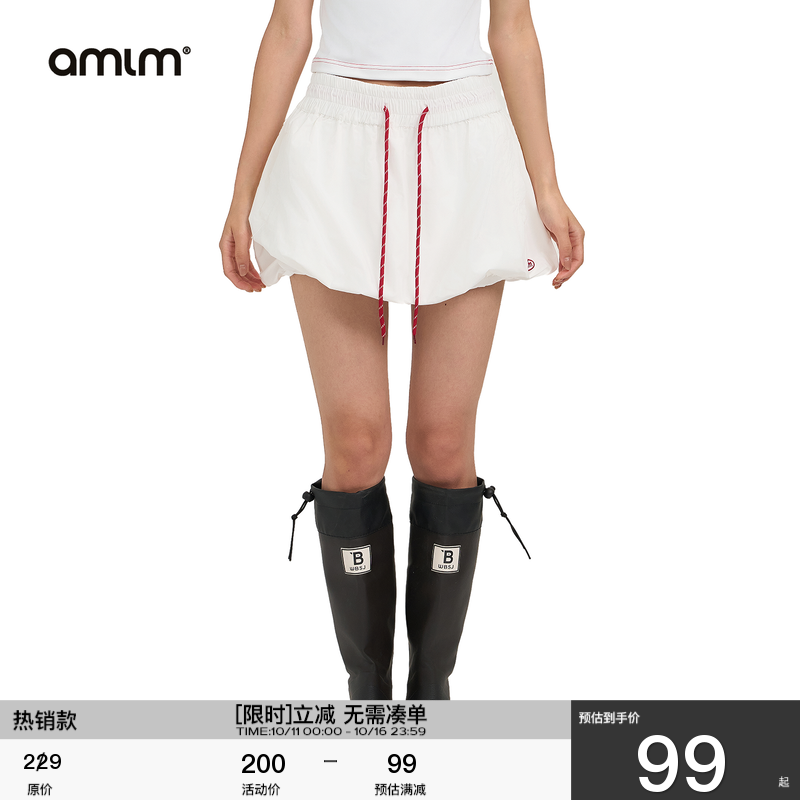 AMLM 夏半身裙logo女生短裙5色多巴胺运动户外蓬蓬裙简约时尚百搭