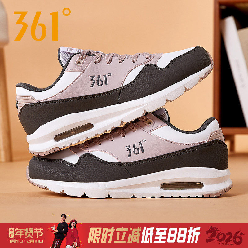 361气垫运动鞋女2026春季新款女鞋361度轻便皮面减震跑步鞋休闲鞋