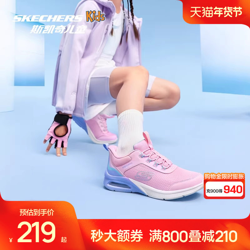 Skechers斯凯奇儿童轻盈舒适休闲气垫运动鞋女童经典潮流休闲鞋