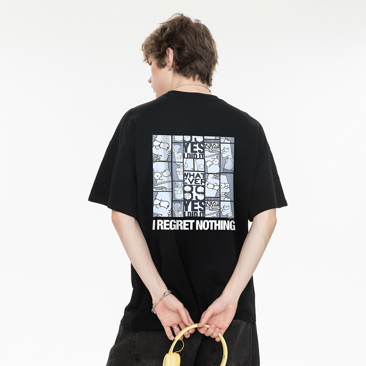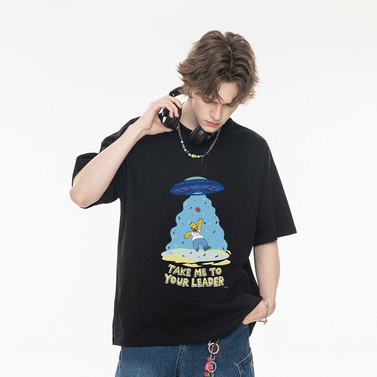 MOBY莫比辛普森一家美式卡通动漫高街简约休闲纯棉短袖男直喷T恤