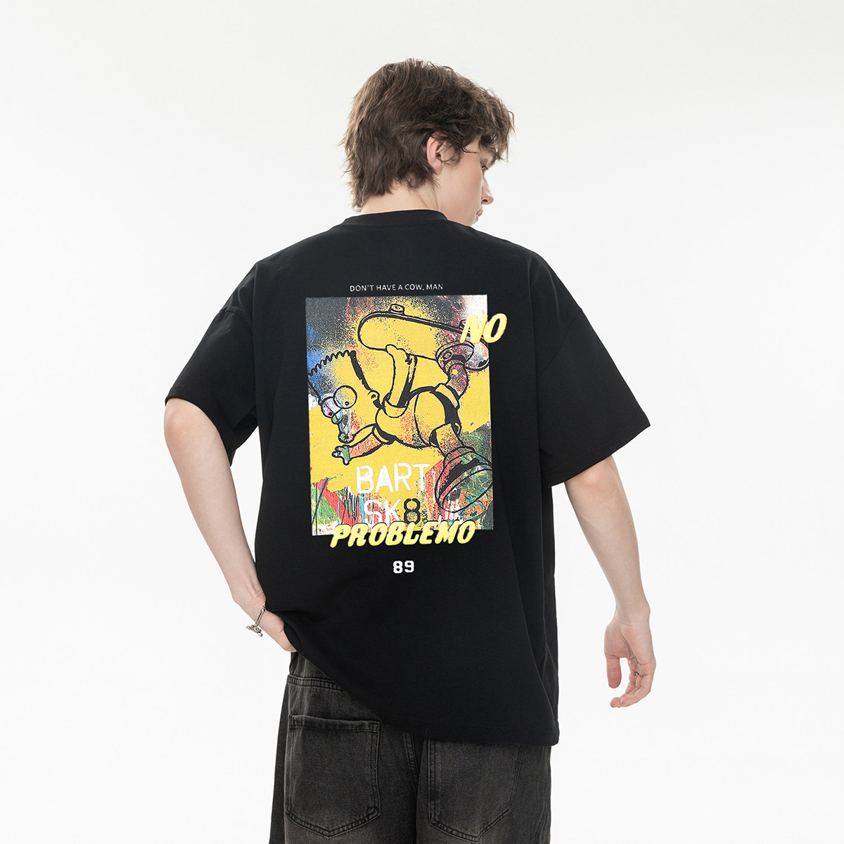 王嘉尔同款黑色短袖辛普森一家短袖t恤男夏季美式宽松重磅卡通潮