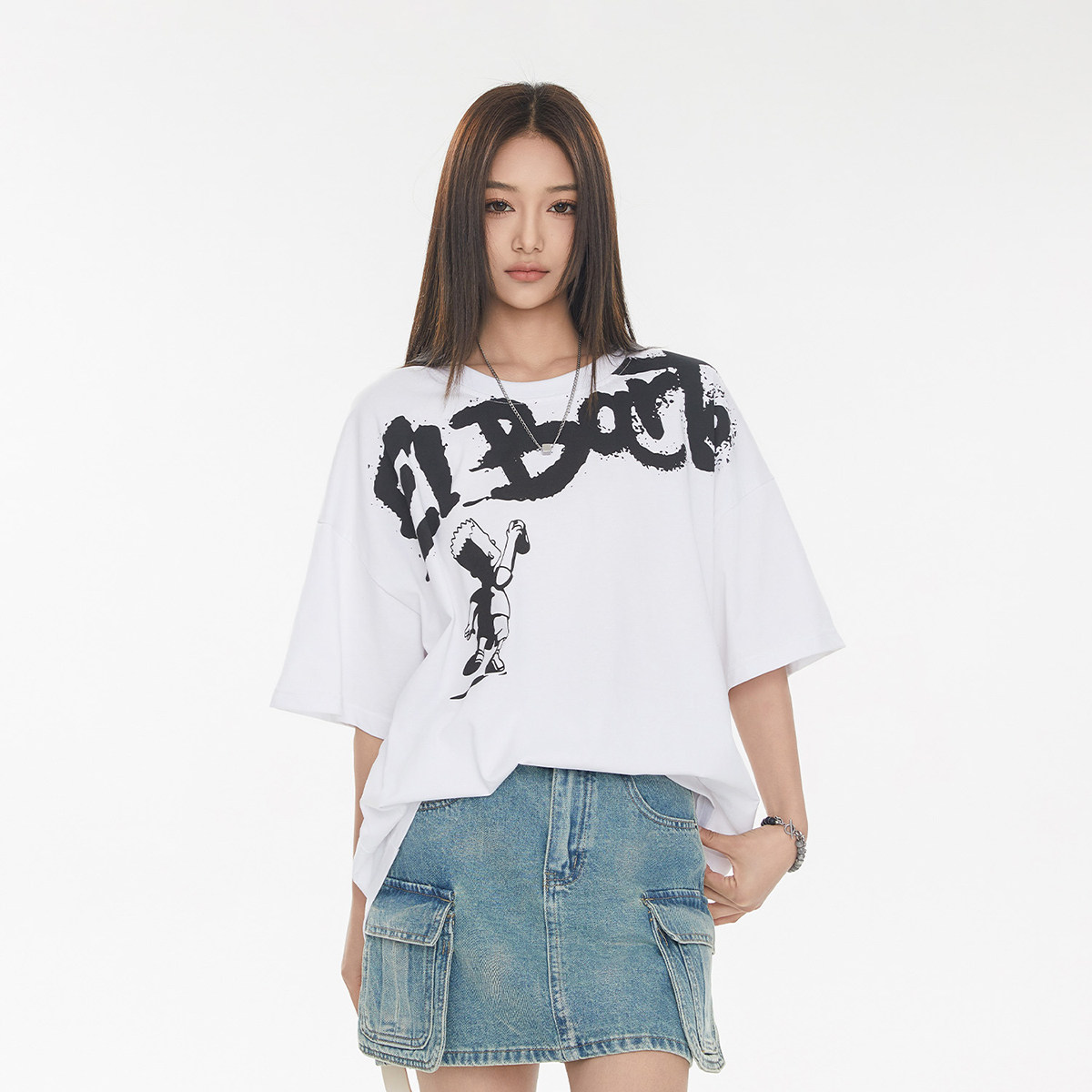 辛普森一家短袖T恤2025新款嘻哈街头风基础字母印花情侣上衣宽松