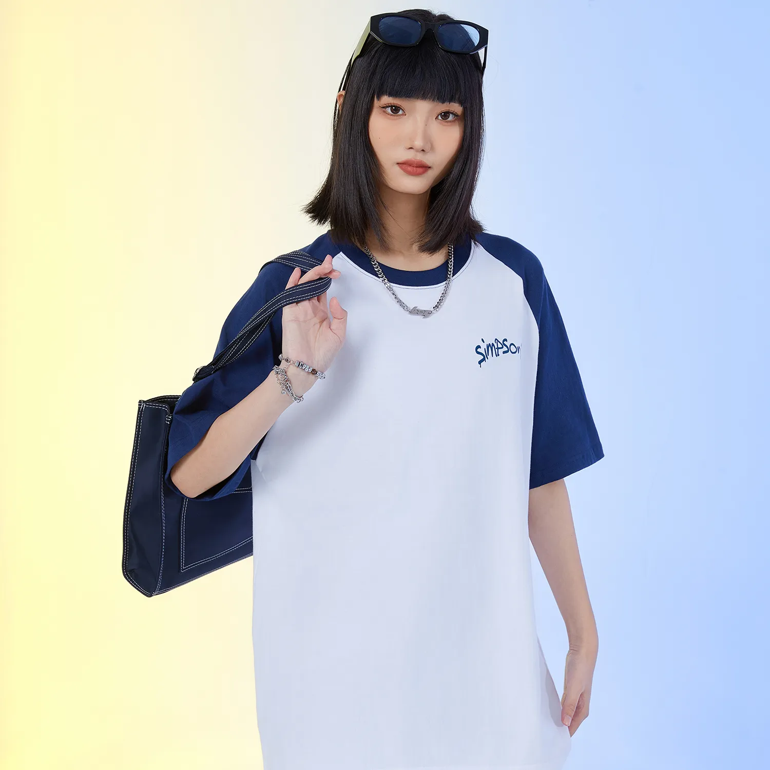 「王栎鑫·同款」辛普森一家短袖T恤新款美式复古拼接撞色圆领男