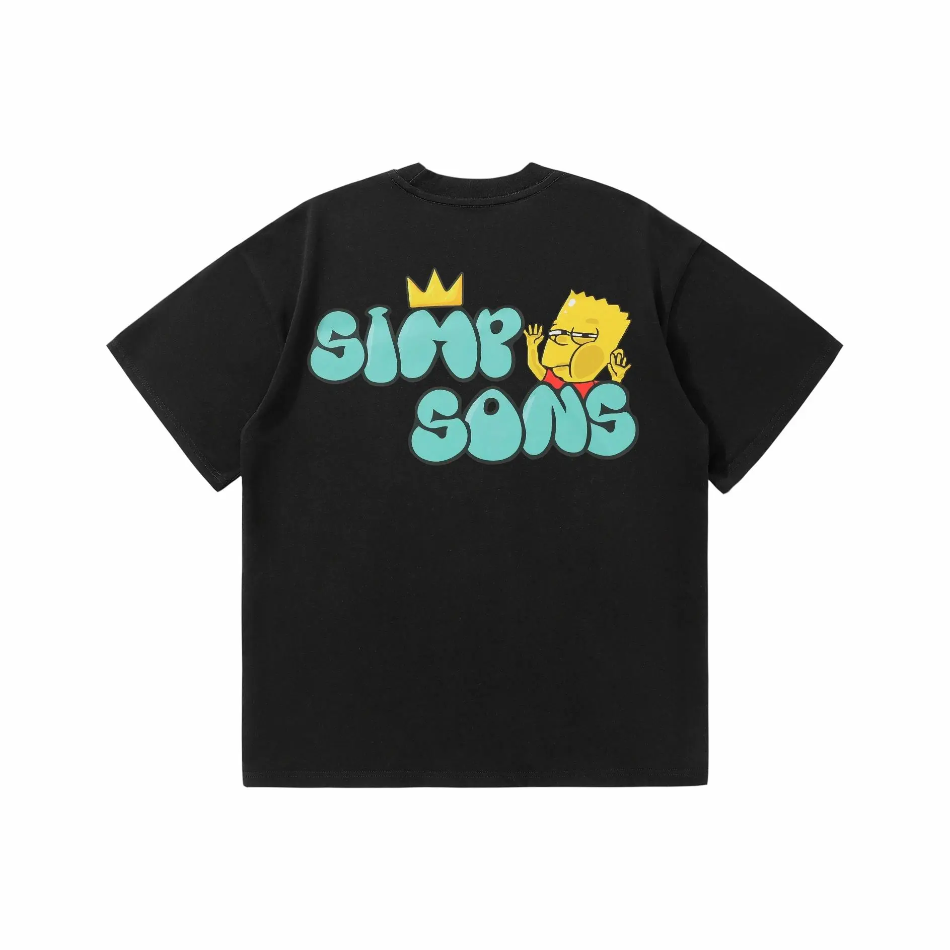 辛普森一家 趣味卡通皇冠图案字母印花纯棉宽松休闲短袖圆领T恤