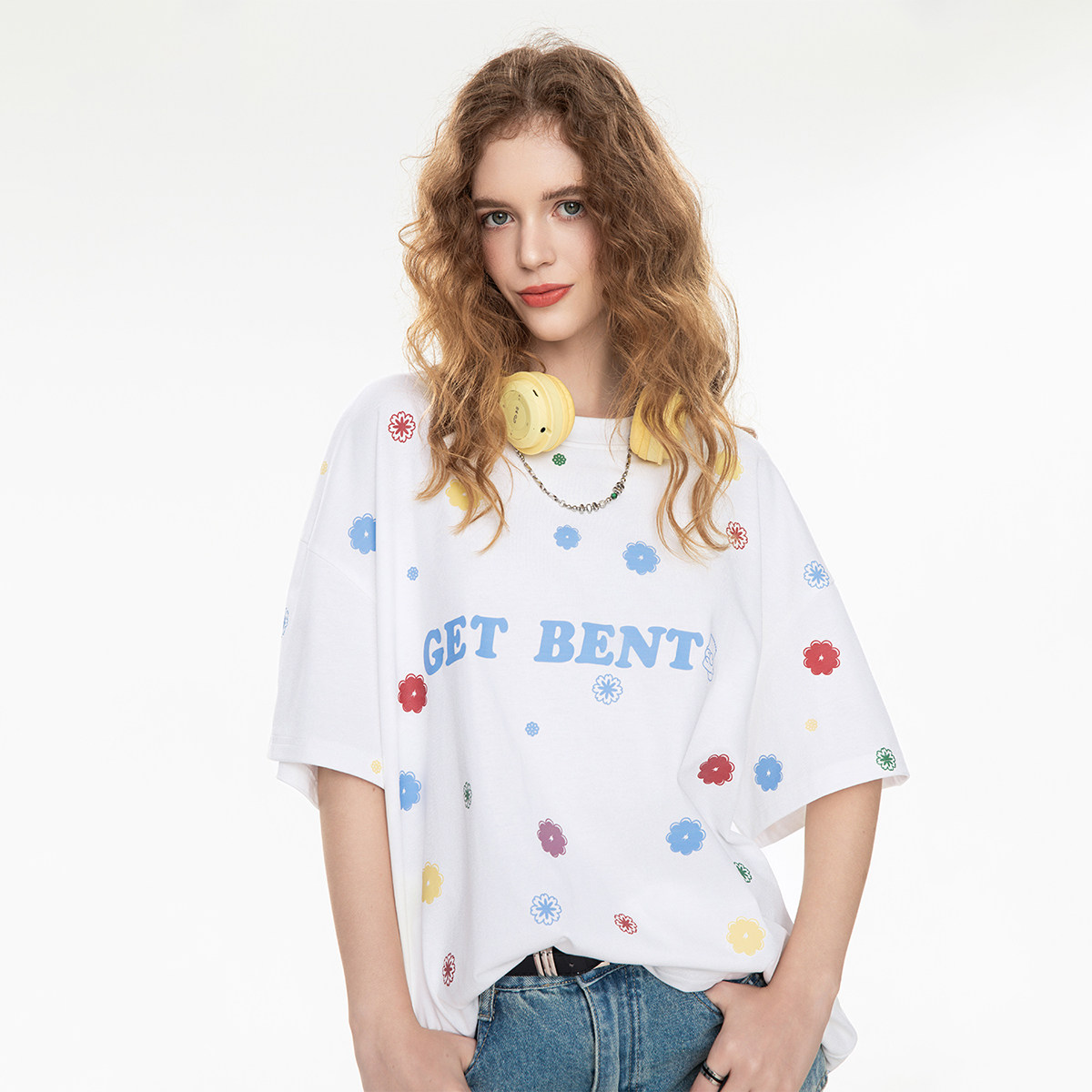辛普森一家多巴胺短袖夏新款T恤波点字母印花潮牌宽松休闲情侣装