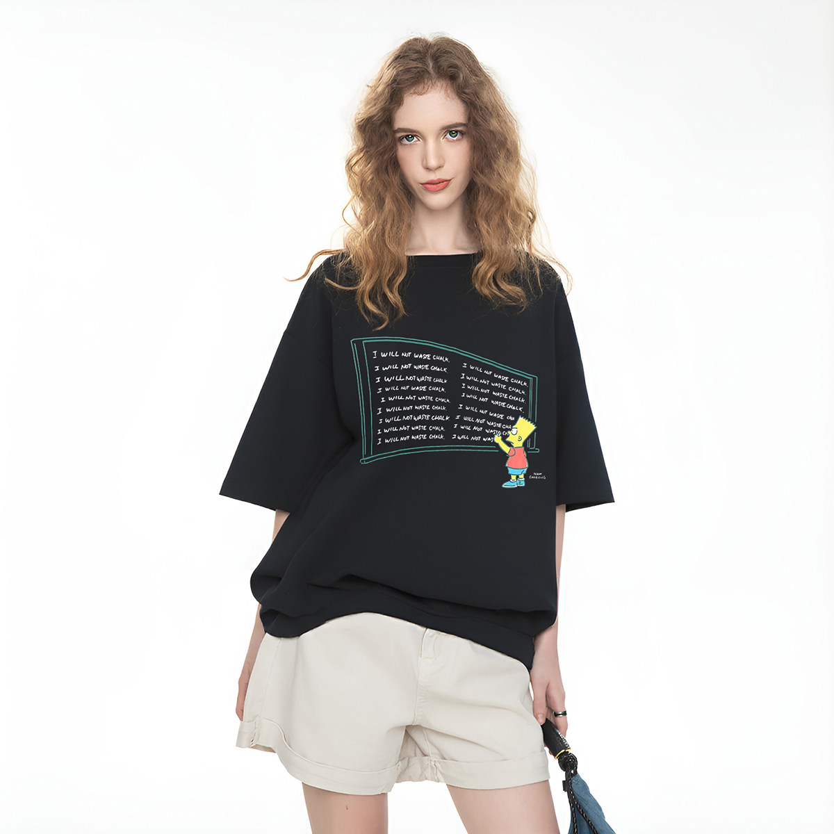 辛普森一家短袖休闲简约印花纯棉T恤2025夏季新款宽松纯色上衣潮